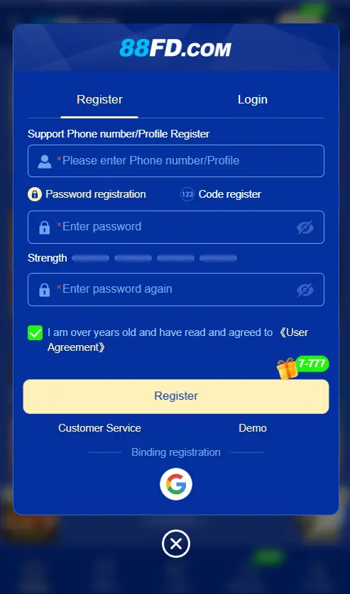 How to Register on 88FD Game