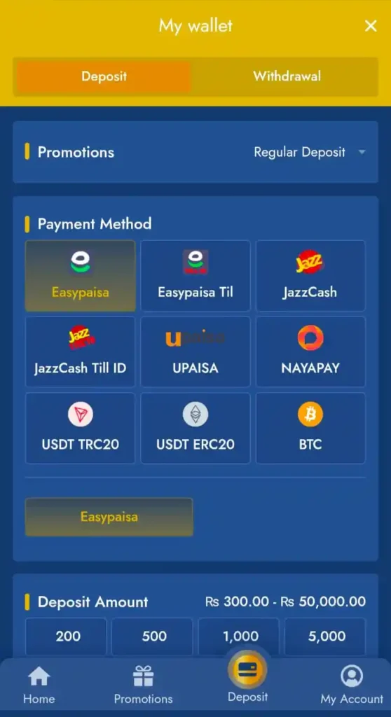 Depositing money into your account is very simple. Follow these steps to start playing instantly: